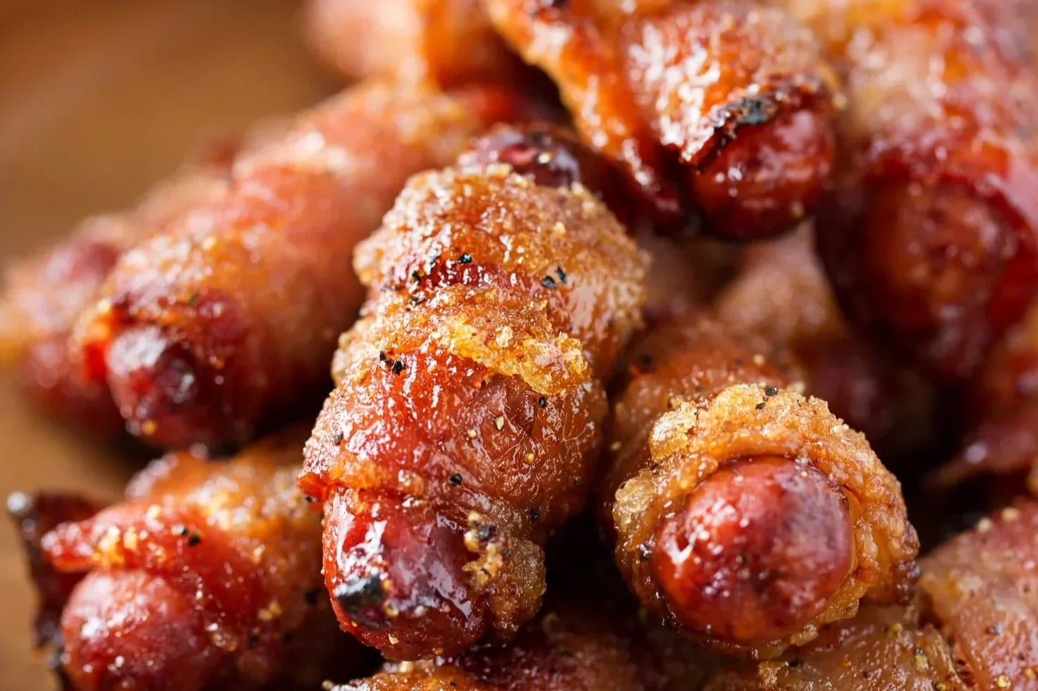 Line sugar rubbed sausages on prepared baking sheet and bake 30 -35 minutes, until bacon is browned. For some extra crispness, broil for a couple of minutes after baking.