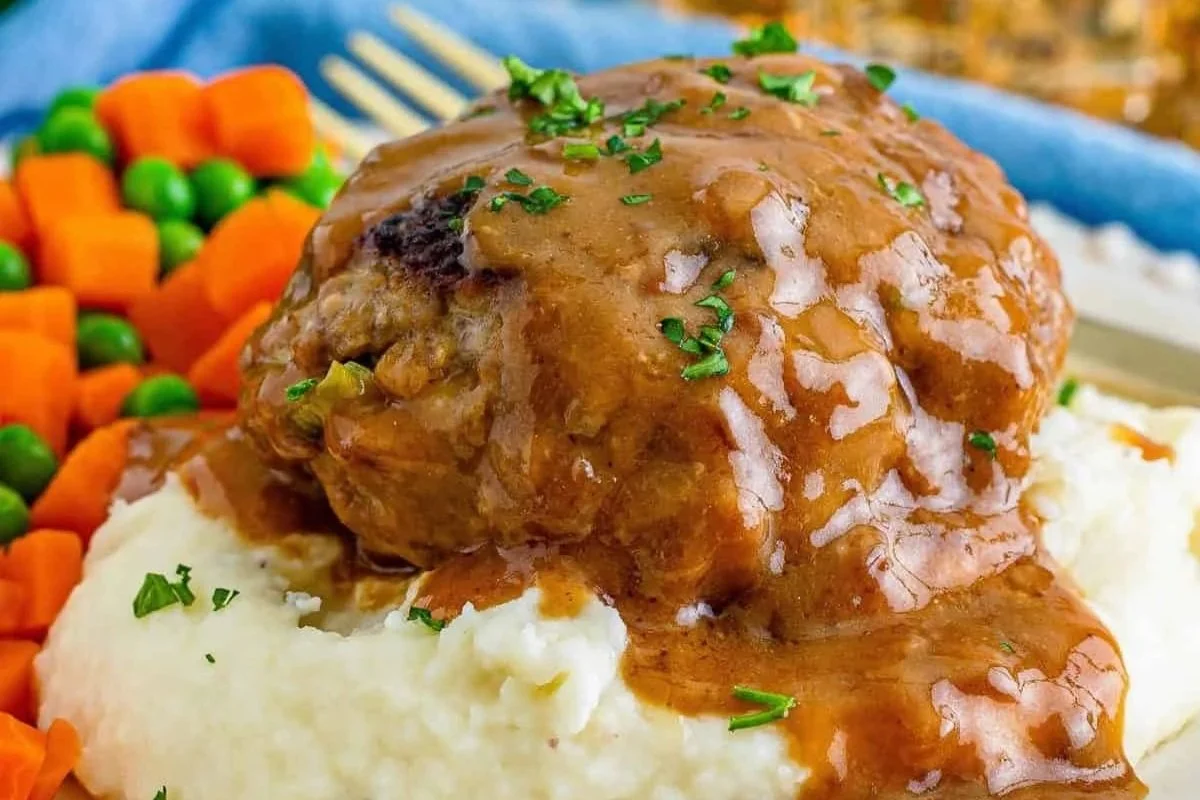 To serve: Place one patty on a plate, top with a scoop of potatoes, drowned in gravy.