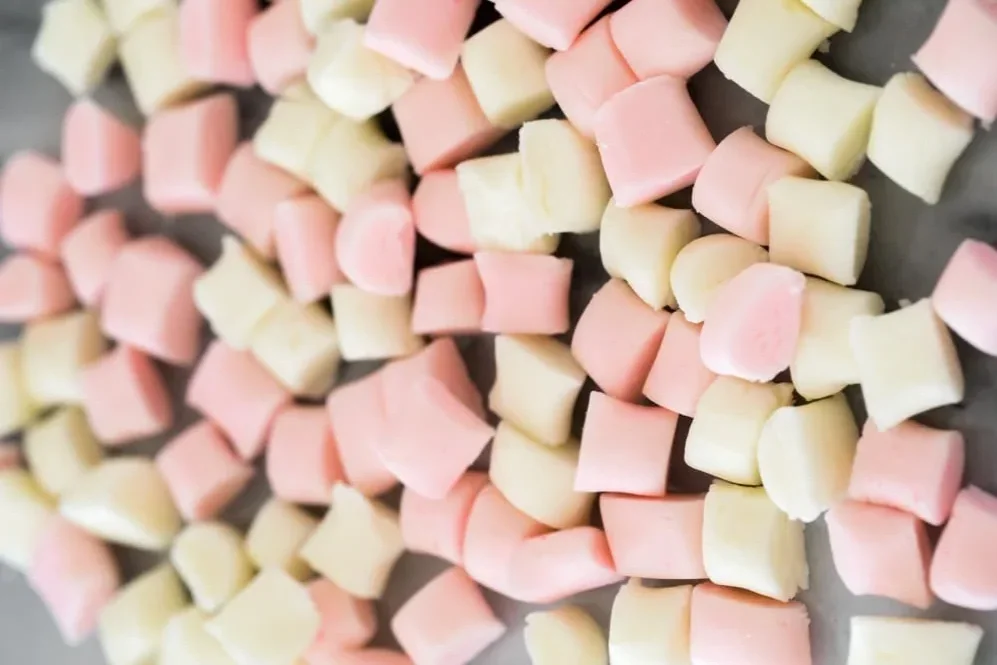 Add drops of pink or green coloring and peppermint oil. Start folding in with paddle until cooled enough to be able to pick up. Twist and pull until it is a dull color and gets harder to pull. Pull into a long rope and cut into 6 or 8 sections that are easier to work with. Pull and twist into a thin rope, then cut into “pillows” (bite-size pieces) with kitchen shears. Let cool about two hours and put in an air-tight container with wax paper between layers of mints. Let mellow for a few days in a cool place or refrigerator. Store up to 3 weeks in refrigerator.
