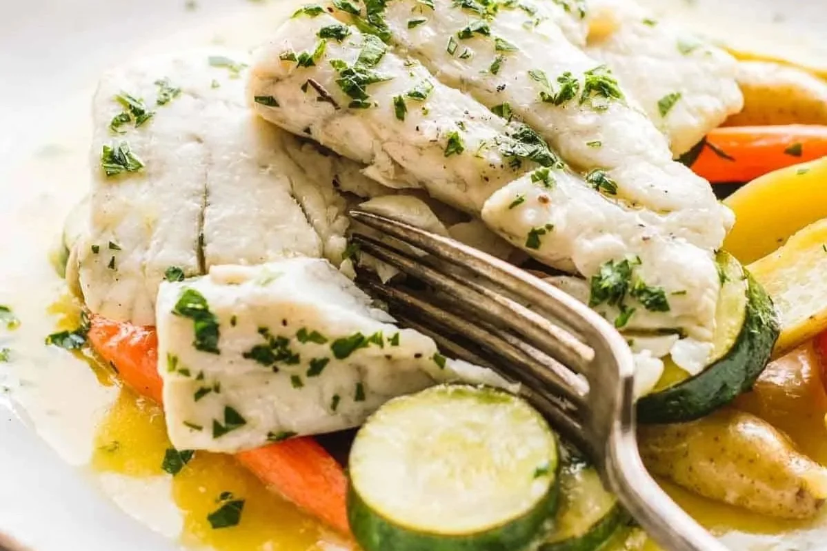 Spoon vegetables onto a plate, then carefully place a fillet over top. Drizzle some of the butter sauce around the plate, then sprinkle the fish with flaky sea salt and parsley. Serve with lemon