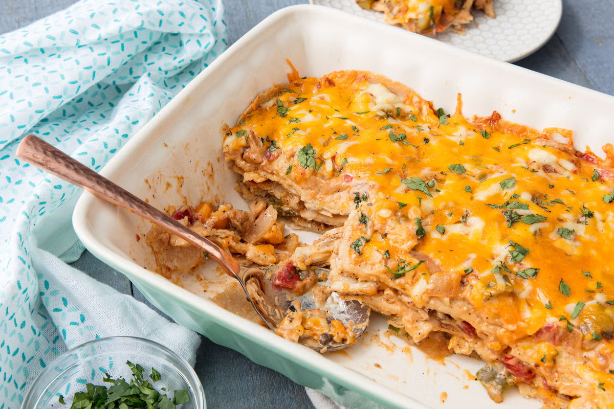 Mix chicken, tortillas, onion and cheese together in a large bowl.