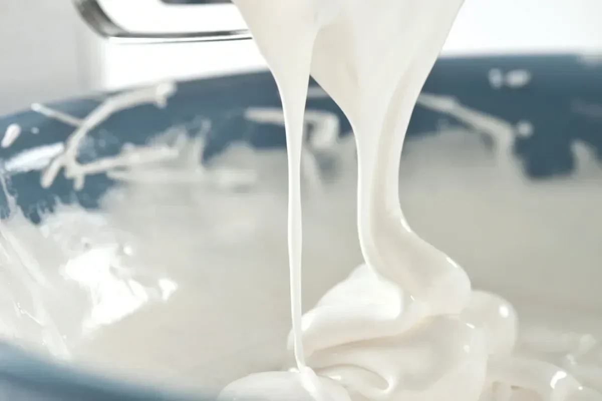 Beat salt into egg whites. When stiff, slowly beat in half of hot syrup and beat 5 minutes.
